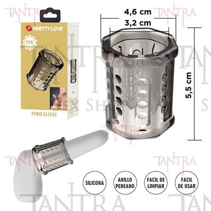 La funda para pene Pretty Love tiene texturas en su contorno para estimular la vagina y también el clítoris gracias a su tierno conejito vibrador. Se ajusta cómodamente al contorno del pene y se sujeta por detrás de los testículos. En la punta posee también un motor vibratorio que genera excitantes cosquilleos tanto en el pene como en la vagina. Fabricada en silicona elástica, sedosa e hipoalergénica. La funda para pene con vibrador Pretty Love es un producto exclusivo de nuestro Sexshop.
